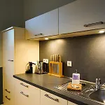 Für Selbstversorger gibt es eine Küchenzeile mit einem Wasserkocher, einem Kühlschrank und Küchenutensilien sowie eine Minibar. Die Parkresidenz Lychen, Ferienwohnung 4 ist in ungefähr 10 Gehminuten Entfernung von der nächstgelegenen Bushaltestelle Friedhof.